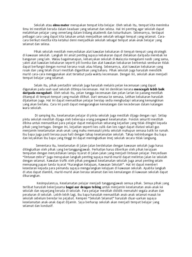 Karangan Spm Sebenar Ciri Ciri Sekolah Selamat
